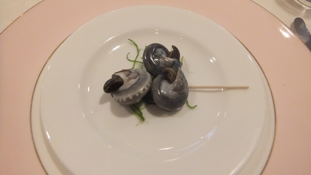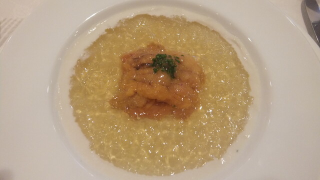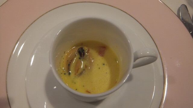 昨日は、四ツ谷にある老舗フレンチ「北島亭」でクラブツーリズム主催のランチ会。今回は20名の参加で男性は私を含めて3名。中高年の女性が多いのはいつも通り。外観も店内もこじんまりとしたアットホームな雰囲気。参加費は12000円。北島料理長、大石副料理長のご挨拶。お二人とも感じが良い。大石氏は先週、テレビ出演をしたとかで明るい気さくな方。今日使う食材をお披露目。大石氏はさかんに北島亭は食材の良さが自慢と強調。その反面、宣伝や食器などにはお金をかけないのでその点はご容赦下さいとのこと。最近はコース料理のみのレストランが多いが北島亭は基本的にランチもディナーもアラカルトが中心。お客さんが来店してご相談してから調理を始めるのでディナーも1回転でへとへとになるのでラストオーダーの時間も、どこよりも早いかもしれないそうだ。調理もお二人、配膳も二人の男性が忙しく立ち働く。今回はお任せのコース料理。アミューズ2品、前菜2品、魚、肉料理にデザート2品、飲み物、デザートのお土産付き。大石氏のお話では北島亭はお任せコースは量も品数も多く、今回は高齢の方も多いのでクラブツーリズム側と話し合ってアミューズと前菜名物1品は普通のポーションだがそれ以降のお料理はハーフポーションだとか。それでも私的には十分な量で満足。アミューズは、まず「千葉県産ナガラミのマリネ、ヴィネグレットソース」、続いて「カナダ産ムール貝のスープ、サフラン風味」。基本的に食材の良さ生かすために過度の味付けはしないとのこと。前菜1皿目は北島亭名物の「北海道産生ウニのコンソメゼリー寄せカリフラワーのクリーム添え」。さすが自慢の1品。雲丹の量も多くコンソメゼリー、カリフラワークリームとの相性も抜群。美味しかった。