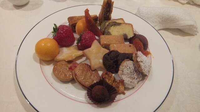 最後はお茶菓子。素敵に盛り付けられたお茶菓子を大石副料理長が披露。ここまでで皆さん、お腹いっぱいでしょうからと各人にお土産にしていただけた。鞄の中に入れて帰宅したので少し壊れたりしたがお味は良かった。苺や金柑が見た目も見事。そういえば他の参加者からお聞きしたが、同じ四ツ谷にある昨年、お伺いした料亭「福田屋」が3月末で今のところでの営業を終えるらしい。今後は今は閉鎖している本館から少し離れた別館で営業していくようだ。昔と違い本館もビル内の営業とはいえ素敵な料亭だった。料亭というスタイルが、今の時代に合わなくなってしまったのだろう。残念。それはともかく、こちら北島亭はお料理も良かったがアットホームなホスピタリティーが最高のお店だった。いうなれば老舗の家庭的な高級ビストロというのだろうか。ミシュランの星が付いたの落としたのなどは関係なく心身ともに暖かいフレンチを味あうには最高のお店だと思った。