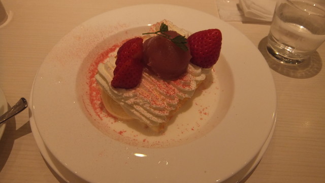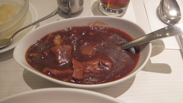 神宮球場で、恒例の「東京6大学・社会人野球対抗戦」を観戦。この大会は、3日間、1日2試合ずつ東京6大学加盟校と関東地区強豪社会人チームが対戦するもの。毎年、3月頃に行われる。第1試合「東大対新日鉄住金かずさマジック戦」は、4対11で新日鉄が大勝。第2試合「法政対新日鉄住金鹿島戦」は、4対4で引き分け。この対抗戦が、いつ始まったのかは、分からないが少なくとも東大が勝ったのは2年前に現日ハムの宮台が明治安田生命を2対0で4安打完封した時だけ。結局、社会人チームの3勝2敗1分けに終わった。初日、東大戦を観戦後、信濃町駅ビル内のこちらで一人残念会ランチ。真ん中の大テーブルでいただいた。店内は、土曜日の午後2時過ぎだったが、ほぼ満席。1300円の「パイナップルハッシュドビーフ」デザート付きに300円の「ブレンドコーヒー」を付けた。合計税込み1728円。ハッシュドビーフは、ほのかにパイナップルの香りがしておいしかった。食事終了と思い会計に行ったらレシートはと聞かれ、有りませんと答えると、まだ、デザートがありますとのことで店内に逆戻り。今までの席は、他の方が既に座っていたので別の席でデザートをいただいた。満足。満席で忙しいのか若干、店員の対応が良く無かったのが高級店だけに、不満だが、まあ、仕方なし。
