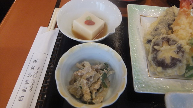 初老になると病院通いが、欠かせない。一昨日は、板橋の病院へ定期診察へ行ってから池袋へ出た。予約診察でも、人気のあるお医者さんなので2時間待ち。終わってからの池袋での一人ランチが楽しみ。以前は、池袋東武のレストラン街を主に利用していたが、池袋西武8階の「西武特別食堂」を利用してから、こちらが気に入りで利用している。「ホテルオークラ」が運営している。金曜日の午後0時40分頃だったが、90%の入り。お客さんは、やはり年配の女性客が多い。和食の「はなぶさ御膳」3110円にした。お造り、海老と季節の野菜天ぷら、小鉢、ごはん、香の物、味噌椀のセット。季節の野菜天ぷらが美味しかった。私は、天ぷらにでもしないと、普段は、野菜を食べない。さらに刺身と天ぷらが揃っていると、どうしても注文してしまう。美味しかった。