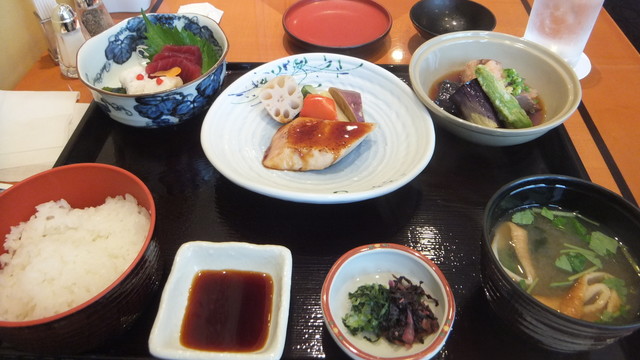 それはともかく、帝京大病院での診察後、池袋へ出て、一人ランチ。8階のレストラン街で一番気に入っている、ホテルオークラが運営している「西武特別食堂」にした。あまりお腹もすいていなかったので、2130円の「旬彩ご膳」にする。造りが、鮪、鱧落とし梅肉あしらい、焼物は、梶木鮪ステーキ照り焼き風、夏野菜添え、一品が牛肉、茄子煎り出し、青唐、赤卸し、旨出し汁、食事が、白飯、香の物、味噌椀。牛肉と梶木鮪が美味しかった。量もちょうど良い。店内はお昼時とあって、ほぼ満席。やはり年配者が多い。