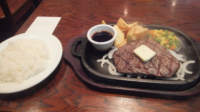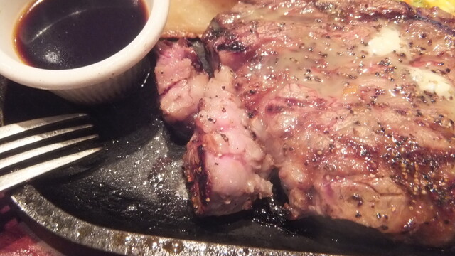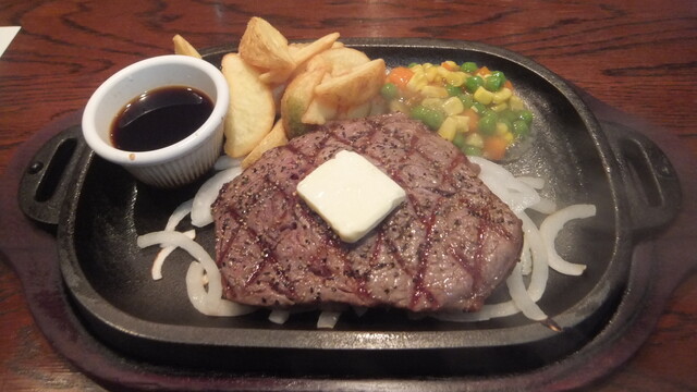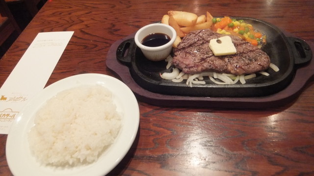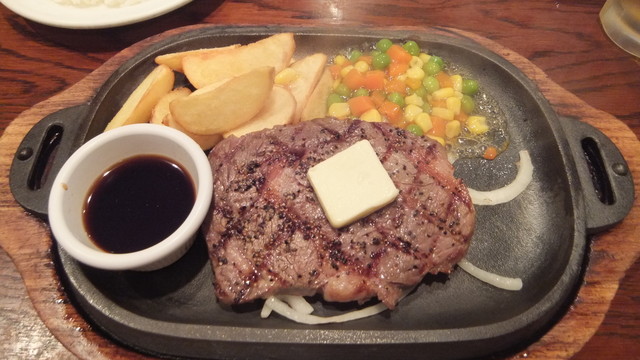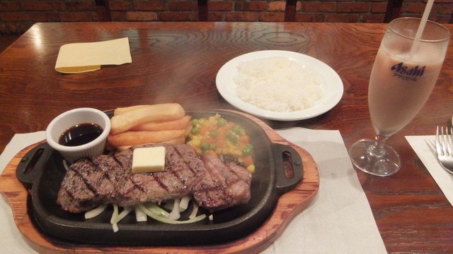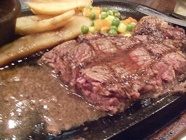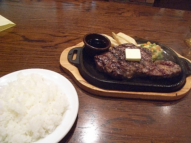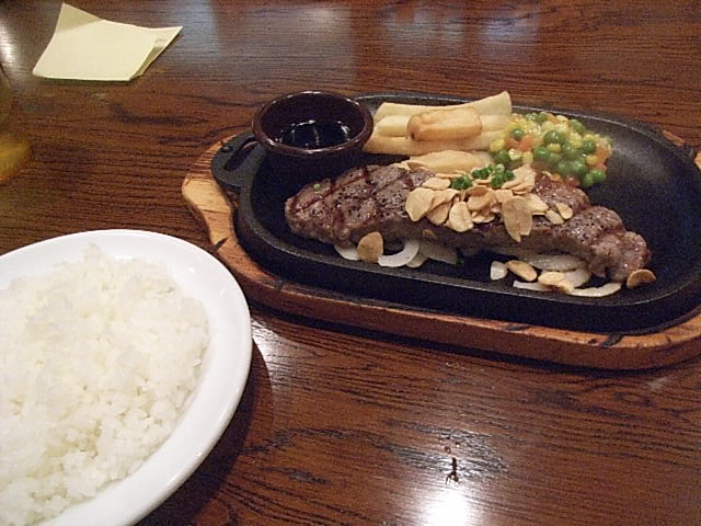 暫くして、熱々で、油が跳ねている状態のステーキ登場。ミディアム。なんということなく、美味しくいただけた。満足。