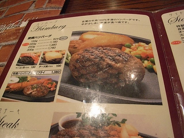 店内は、予約の宴会グループが、これから、来るらしい雰囲気。それ以外には、高校生らしきカップルが、ハンバーグを食べていた。