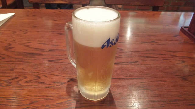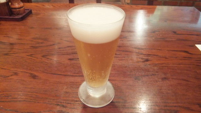 生中ジョッキビールに、オードブル、ガーリックステーキ150g、ご飯のセット。ビールは、デカンタ小ワインに変えられる。この時は、ビールをいただいた。