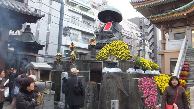 昨日は、公休日。お昼前に、お世話になっている知人が、母のお参りに来訪。89歳のご婦人だが、まだ、十分、自分で歩けるし、頭もしっかり、この方とお話しをすると、いつも、心が和む。その後、巣鴨へ、ビタミン剤を購入に出かけた。すると「金物様」でお馴染みの「真性寺」で、菊祭りが行われていた。この時期、恒例の行事だが、いつ見ても綺麗だ。