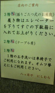 先週の金曜日の夜、巣鴨の「とげ抜き地蔵」に御参りに行ってから夕飯を1ヶ月ぶりに「八つ目や・にしむら」でいただいた。