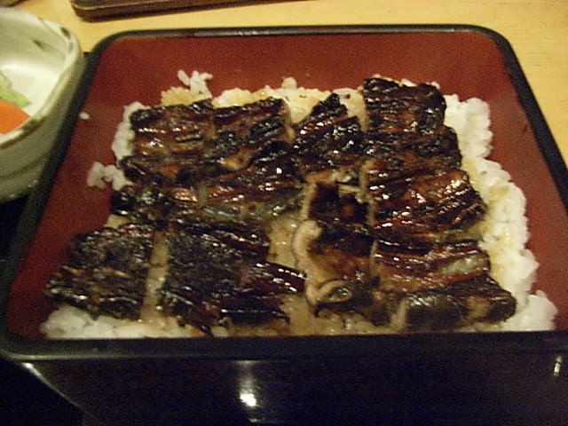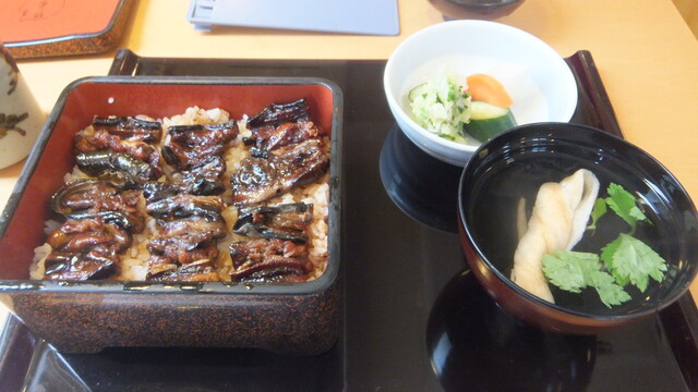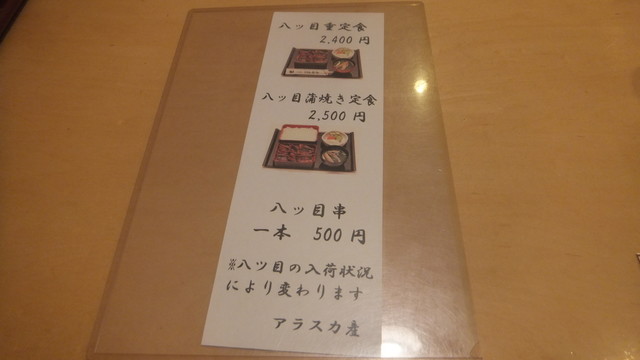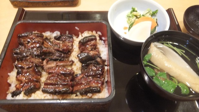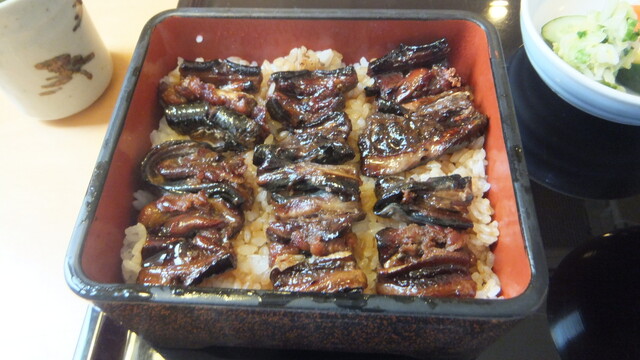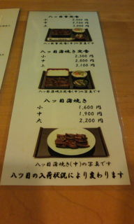 待つ事暫く。出てきた、中の「八つ目重定食」の八つ目鰻を見ると、なんとなく、小さくなったような気がした。味は、以前に比べると、臭いや食感などの独特のくせが、少なくなり、食べやすくなった感じ。美味しくいただいた。