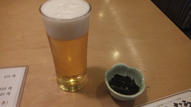 久しぶりに、八つ目鰻を食べて元気になろうと訪問。しかし、「八つ目鰻」は入荷なし。しょうがないので、2階で「生ビール(小)」400円を飲みながら、「鰻の肝焼」1本300円をいただく。こちらは、1人1本限定。鰻も取れなくなったとかで、段々、メニューも制限付きになってきた。その後、「白焼き・中」2000円をいただいた。うーん美味しい、満足。それにしても、「八つ目やにしむら」とは言いながら、1年を通して八つ目鰻が、ほとんど無い。冷凍物を含め入荷しないという。店頭に「本日、八つ目の入荷は有りません」という掲示が、むなしい。
