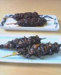 「鰻の肝焼き」(下)と「八つ目鰻のもつ焼き」