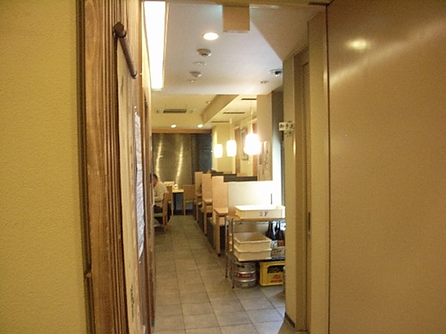 頭で、「今日は、上のレストランで、八つ目、ありますか」と尋ねたところ「ありますけれど、午後7時閉店なので、それで、宜しければ」とのこと。時刻は、午後6時半頃。この辺りの閉店は、早い。まあ、1人だし、かまわないと思い、2階のカウンター席でいただいた。