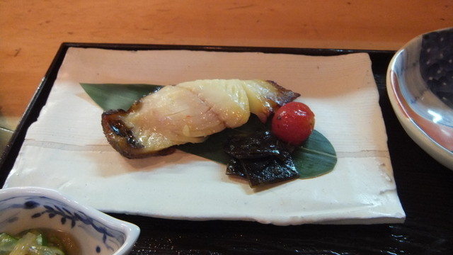期間限定、10食限定。こちらの名物「銀だら西京焼」、玉子焼、小鉢、御飯、止め椀付き。まだ、早い時間だったので、先客は、2名。窓際のテーブル席で、いただいた。全体的に上品なお味。さすがに「銀だら西京焼」は、美味しい。私は、赤出汁味噌汁は、あまり、好きではないが、こちらの止め椀は、あまり濃すぎず、美味しく、いただけた。たまには、こういった日本料理も良い。