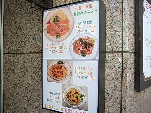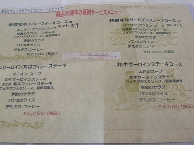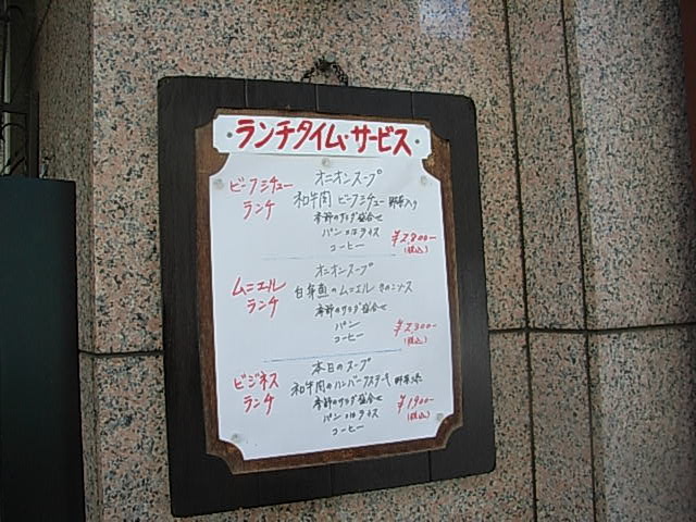 以前、来たときに見かけた、亡くなった独文学者「高橋義孝氏」の色紙が無くなっていたが、いかにも、高橋氏が、色紙を書く雰囲気にピッタリのレストランという感じのフレンチ。