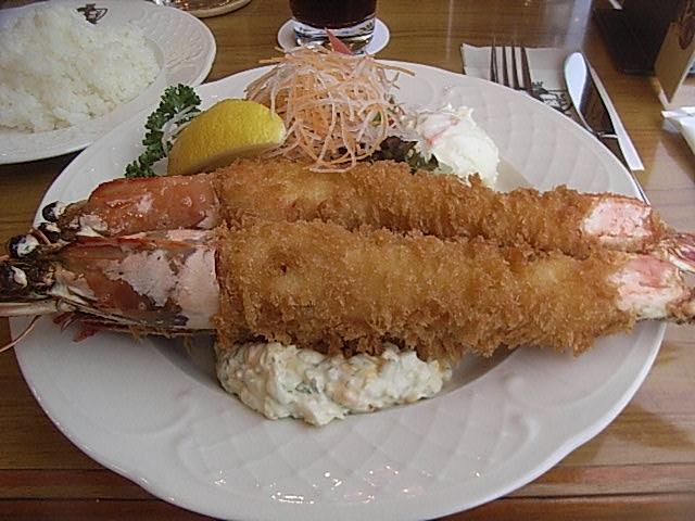 エビフライは、今、何処にでもあるが、私は、やはり、こちらの物が、一番好きだ。物知らずの私は、このエビを伊勢エビと、勝手に勘違いしていた。大きなエビ、イコール伊勢エビという思い込みがある。