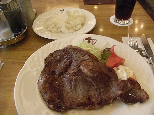 ステーキは、サーロインで、ライス付き。やっぱり、ステーキは、サーロインが、一番。