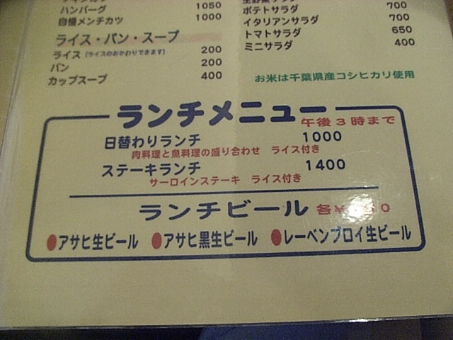 先日も、行きつけの神保町のビアホール「ランチョン」にて、「ステーキランチ」1400円と「ランチビール」450円をいただいた。午後3時までのランチメニュー。ステーキは、通常の時間に比べてお得感が高い。サーロインステーキで、ライス付き。ビールは、「アサヒ黒生ビール」と言ったつもりなのだが、来たのは「レーベンブロイ生ビール」。ま、しょうがないと、そのままいただく。ビールは、他に「アサヒ生ビール」の3種類から選択できる。お値段は、同じ。窓際の席で、一人、至福の時。ステーキは、サーロインかリブロース。とんかつは、ロース。これは、絶対。下の記事を見ると、同じ事を書いている。やっぱり、好みは、変わらない。