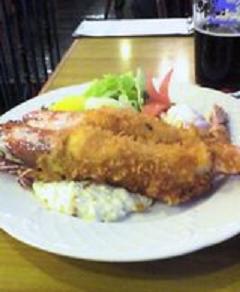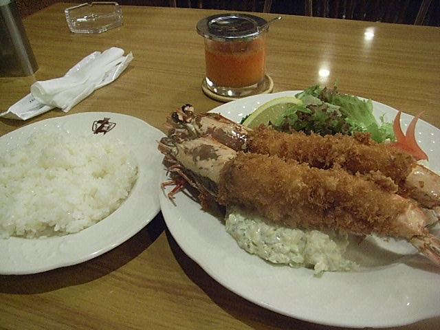 伊勢海老フライが、2尾で、食べ応えがある。伊勢海老は、車海老に比べると大味と言われる。