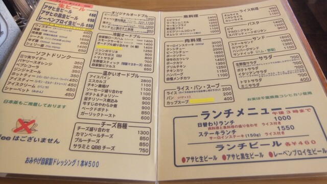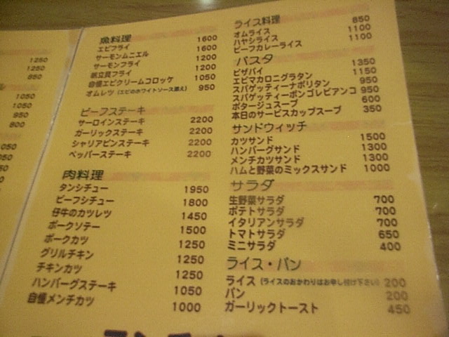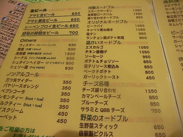 こちらのビールは、「アサヒ」のみ。私は、ビールの銘柄の違いによる味の違いは、さほど、こだわらないというか、分からないので、何でも良い。