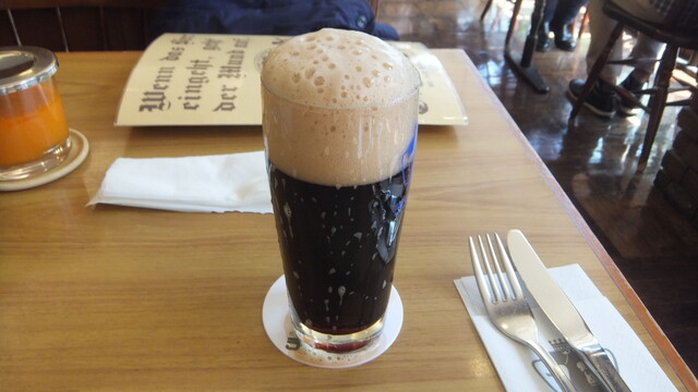この日は、あまり、コッテリしたものを食べたくなかったので、「アサヒ黒生ビール」580円と「オムレツ」800円を注文。ここでの、飲み物は、いつも、この黒ビール。