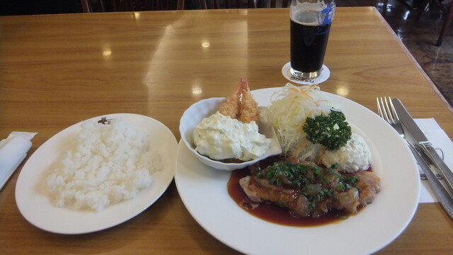 先日、注文した眼鏡が出来たと連絡があり神保町へ行った。眼鏡を受け取ってから一人ランチ。明大校友会館内にある椿山荘のレストランへでも行こうかと思ったが、そこまで行くのが面倒になり、お気に入りのこちらにした。私は基本的に食べ歩きレビューは、批判的な事は極力書かないことにしている。人のレビューを読んでも実際に自分で行かなければ気に入るかどうかは分からないからだ。という事を書くと身も蓋もないが事実だから仕方がない。本音を言えば、本当に私が気に入っているレストランは、さほどない。その本当に気に入っているレストランの1軒がこちら。通い始めて、4半世紀ぐらいになる。この日は、460円のランチビールの内から「アサヒ黒生ビール」と1000円の「日替わりランチ」にした。この日の「日替わりランチ」は、ポークジンジャーと海老フライ。ライス付。私は、こちらの大きな海老フライが好きだが2600円もするので年金生活者には昔のように、ホイホイとは頼めない。で、日替わりランチに海老フライと書かれているので即注文。黒ビールを飲みながら待っていると登場。ち、ち、ち、小さい。海老フライが2尾付いているが小さい。味は悪く無い。まあ、値段が違うから仕方がないと、あきらめる。とはいえ、このお店の雰囲気は好きだ。又、来たい。