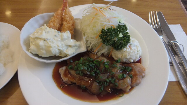 こちらのボリュームのある「エビフライ」は、昔からのお気に入り。タルタルソースをつけていただくと、子供の頃、めったに、いただけなかった贅沢メニューの再現で、非常に満足。