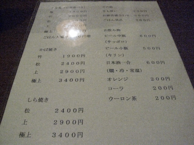 20分ほど待ち、「しら焼き・松」2400円が、登場。適度な大きさで、しつこくなく、上品な味だ。