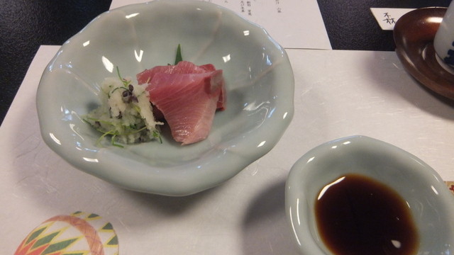先日、「クラブツーリズム」主催のランチ会が豊島区雑司ヶ谷の料亭「寛(かん)」で、行われた。こちらは、以前から、一度、お伺いしたかったが、2名からということで、なかなか機会が無かった。以前、「クラブツーリズム」で行われた時は、日程が合わなかったが、念願の参加が出来た。地下鉄有楽町線「護国寺駅」1番出口から徒歩7分。少し分かりづらいが、趣のある建物の料亭。こちらは、昭和初期、サンカ作家として活躍した「三角寛」の邸宅を料亭にした物で、もう築90年程。ほとんど、昔のままに、保存しているとの事。サンカといっても、もうピンと来ないがガイドさんは、いまでいえば、ホームレスとおっしゃっていたが、ちょっと違うような気もする。まあ、当たらずと言えども遠からずか。今回は、全7品で10500円。参加者は、約30名ほど。やはり、女性が、圧倒的に多い。先付は、丸大根豆腐、美味出汁、山山葵。濃厚な味に、山葵が、美味しい。お椀は、潮仕立、真鯛酒蒸し、天蕪、新筍、芽葱、忍び生姜。上品な味で、真鯛が素敵だ。御造は、鰤、妻いろいろ。これも、脂が乗っていて美味しいし、妻が、なかなか珍味。焼物は、鰆塩焼き、すだち、杏子蜜煮。これも、良かった。今回は、全て、なかなか美味しい。煮物は、海老芋、亀戸大根、蓬麩、べっこう餡、山葵。私は、あまりこの種の煮物は、好きではないのだが、これは、美味しかった。特に、蓬麩が、良かった。続いて食事は、しらす九条葱梅御飯、味噌汁、香の物。お新香が、美味しい。締めは、甘味。紫芋羊羹。これも、洒落た器に上品な甘さで、堪能。いかにも、昭和初期の日本家屋でありながら、室内は、洒落た感じが、満載。楽しいお食事会となった。満足。