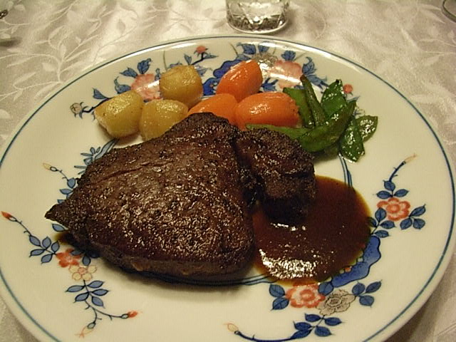 次に出てきたのが、豪快な大きさの海老。そしてA5フィレ肉のステーキとサラダ。