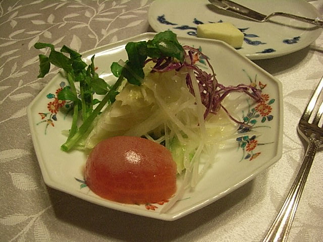 オードブル2種は、フォアグラとホタテ。美味しい。フォアグラの濃厚な味が、素敵だ。