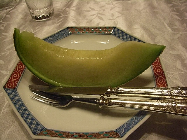 メロン、アイスクリーム、コーヒーと続いて終了。