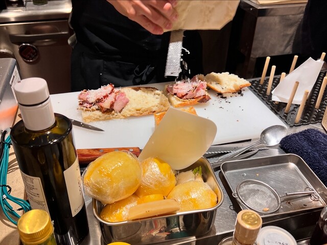 普段は普通の生ハムとパニーノ主体の立ち飲み屋ワインバーですが、天野さんの秘密のスイッチが入った途端に店はガラリと変わります。