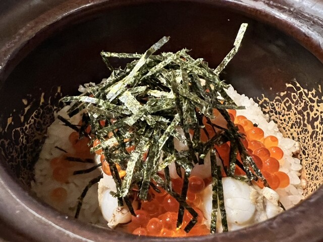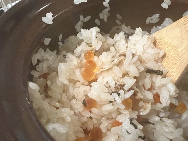 ホタテといくらの土鍋ご飯は文句なしです!一気食いしました!