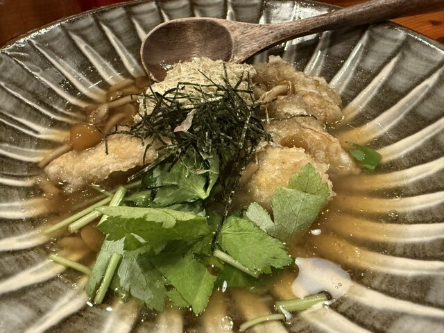 合鴨の天ぷらはとてもジューシーだった、鴨って硬いイメージだけどそんなことはなかった。