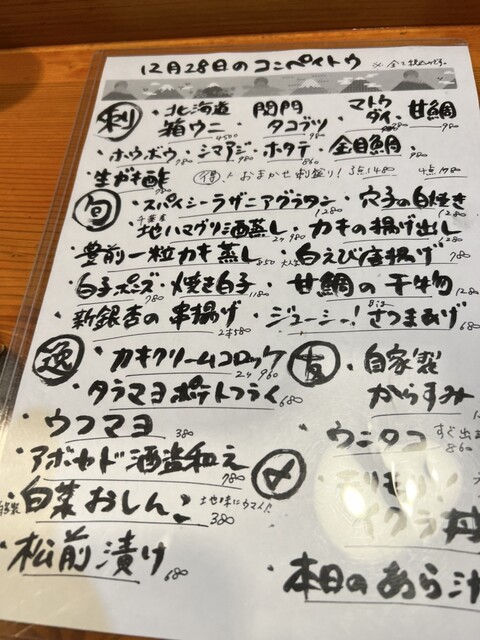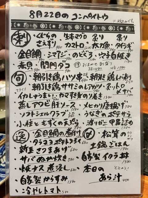 毎度おなじみの旨さ、これ食べに通ってるまである。コンペイトウのタコってなんでこんなに美味しいのだろうか。。今宵はカキが抜群に美味しかった。