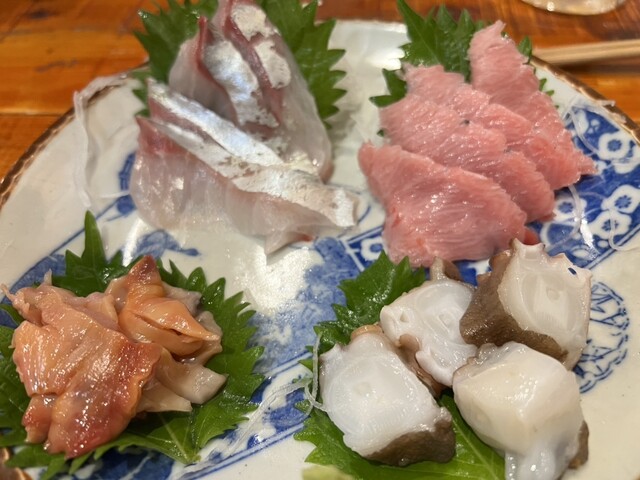 フタエゴ刺し、焼き白子、シラスのアヒージョ