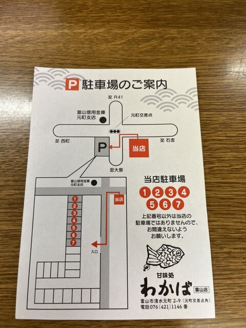 お店の前には車2台、お店の信号を左に駐車場7台あり