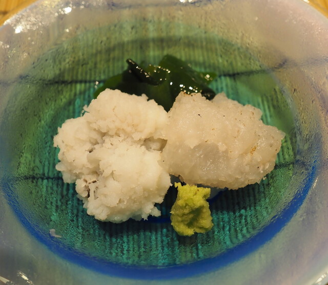 混然一体となった優しい甘さと香りが口の中に広がり、花山葵の辛味も食欲を掻き立てます。
