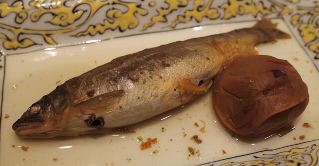 同じく脂の強い桜鱒は味噌漬け焼きで、濃厚ながらほどよく脂が落ちて、酢バスとさっぱり。
