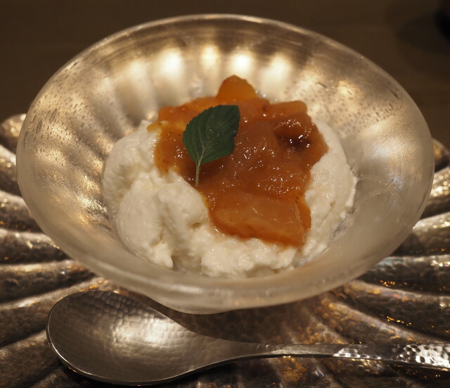 豆乳ムースには林檎のコンポートが乗り、ほどよい酸味と豊かな甘味で締めました。