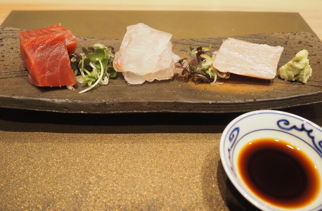 お造りは本マグロのトロと赤身にアズキハタで、脂乗りがよく、ねっとり食感も溜まりません。
