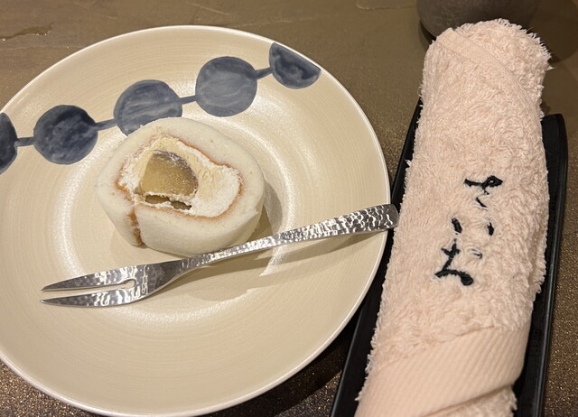 ちなみに最後の写真はコース外というか、私がお土産に持参したロールケーキで、