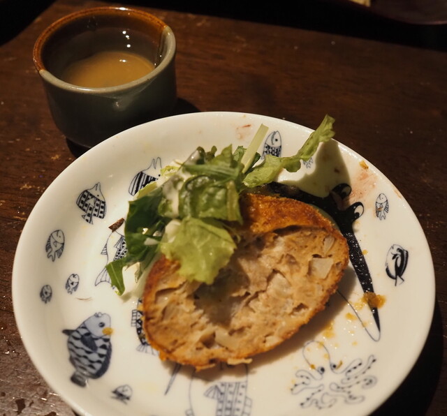 しばらくしてムロアジの水餃子とメンチカツ、〆には明日葉蕎麦と、私はお腹いっぱいに。