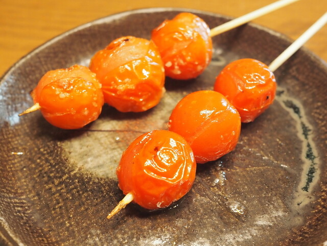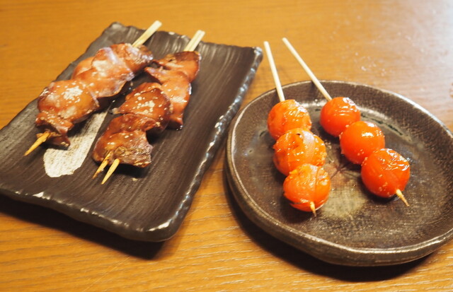 つくねと頼んでいき、パートナーたっての希望で、うずら玉子、トマト、椎茸も。