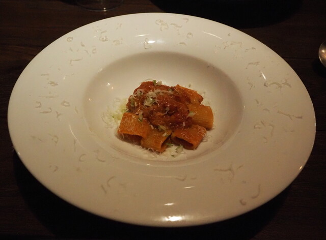 ○豚トロと下仁田葱の燻製アマトリチャーナ メッツェ・マニケ