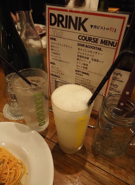この日は二人とも「飲み放題付き定番コース」で、生ビールとジャスミン茶で乾杯し
