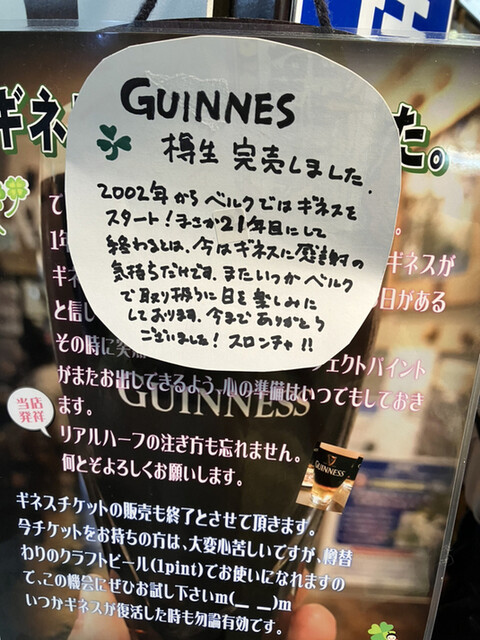 セントパトリックデー特別セット ベルクドックとギネスパイントで税込¥1,100
