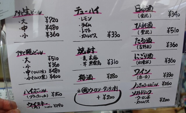 飲み物は、角ハイボール(角ウィスキー280円+炭酸200円)から始めます。