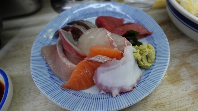 この日は、まぐろ・ハマチ・サーモン・鯛・サバ・タコの盛り合わせ!