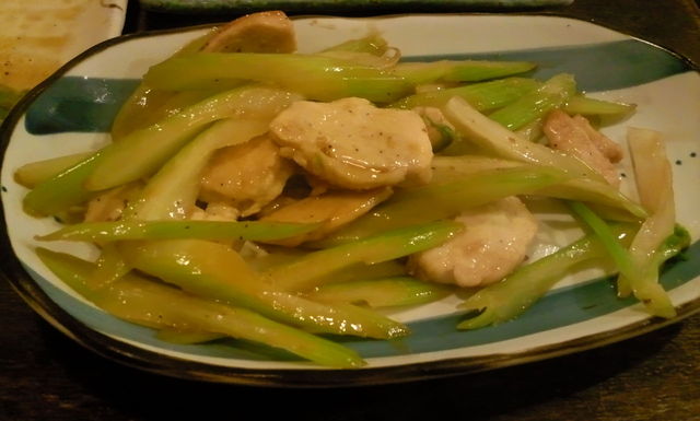 こらは鶏肉とセロリを塩味でさっと炒めた