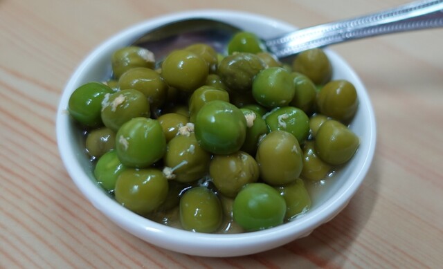 サービスのお通しは、エンドウ豆の煮物です。