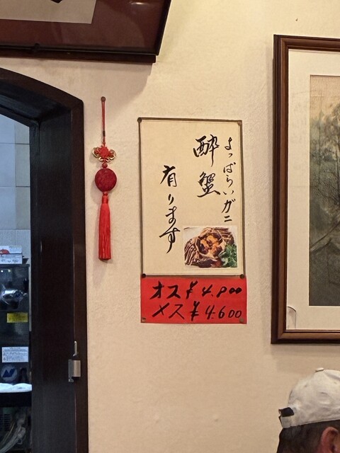 酔っ払い蟹は、オス¥4,800、メス¥4,600、とありました)